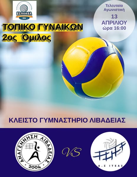 Αύριο Κυριακή 13/4/2025 και ώρα 16:00 στο κλειστό Γυμναστήριο Λιβαδειάς η γυναικεία ομάδα μας δίνει κρίσιμο αγώνα με την Ιτέα και οι αθλήτριες , οι Προπονητές και η Διοίκηση καλούν το φίλαθλο κοινό της πόλης να παραβρεθεί στις εξέδρες του κλειστού έτσι ώστε να γίνουν ο 7ος παίκτης στην προσπάθεια της κατάληψης της 2ης θέσης του ομίλου που δίνει προβάδισμα έδρας στην φάση των 8 στο πρωτάθλημα γυναικών.
